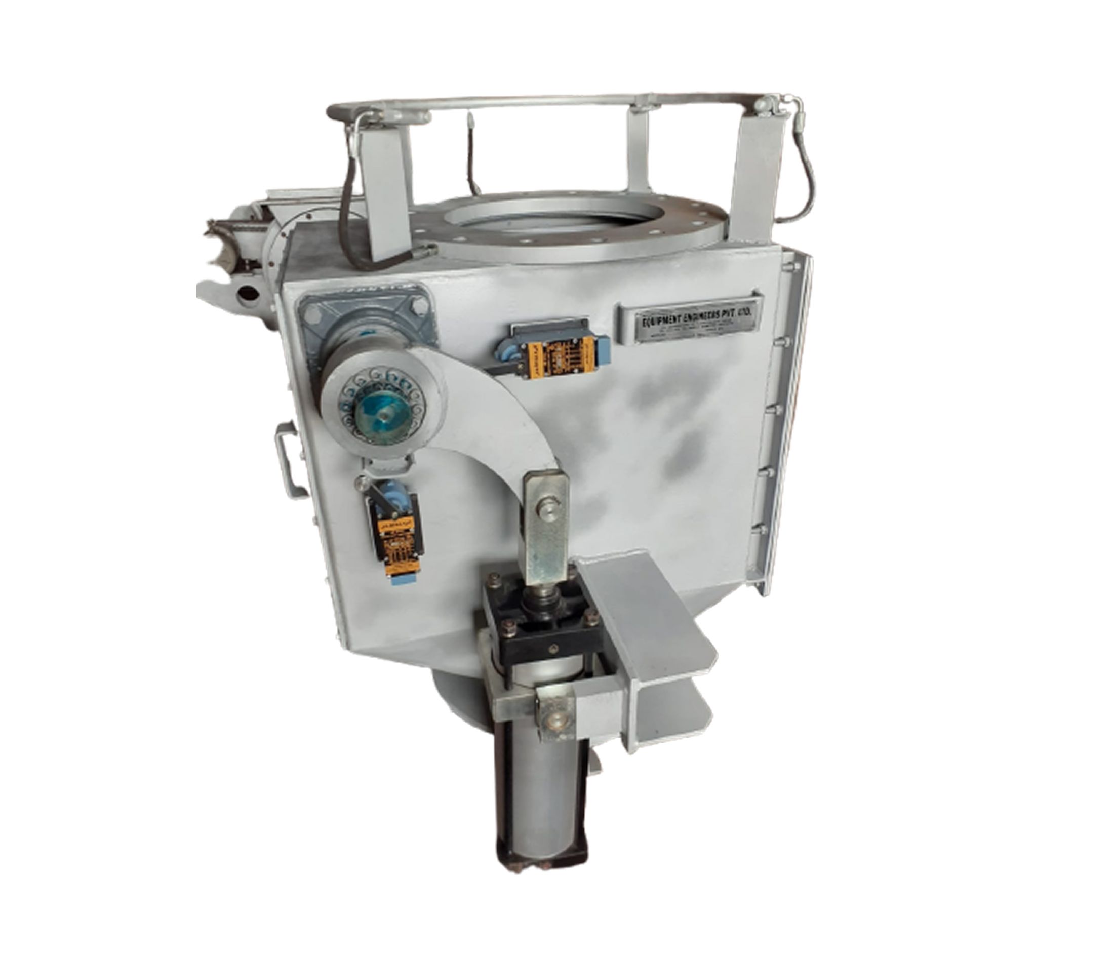 Two basic types of valves are offered –Motorised and gravity operated. Gravity operated valves close by the action of counter weights whereas motorised valves can have counter weights or spring to impart the closing force. Valves can be made for material temperature as high as 1000°C.The required refractory lining in casing remains in customer’s scope. Flaps or cones are self-aligning type so that a leakproof seating of flap/cone on seat is achieved. Larger valves usually have 2 –flaps per stage whereas smaller valves have a single flap per stage. However large size valve with single flap is also possible.